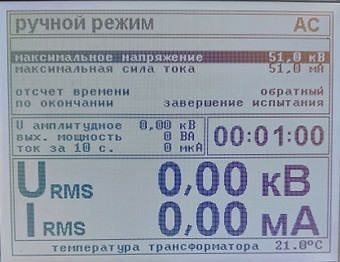 Основные технические характеристики аппарата высоковольтного испытательного ПрофКиП АВИЦ-120Н