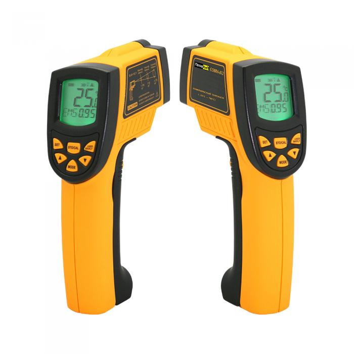 Инфракрасный термометр ПрофКиП Cobra-852 использует в своей работе излучение оптического и инфракрасного спектров. Возможность дистанционного измерения температуры является несомненным преимуществом пирометра перед традиционными контактными термометрами. Высокая точность и малое время отклика наряду с низким энергопотреблением увеличивают популярность термометра ПрофКиП Cobra-852. У инфракрасного термометра обширная среда применения: экологическая и химическая отрасли, неразрушающий контроль, отопление и кондиционирование.