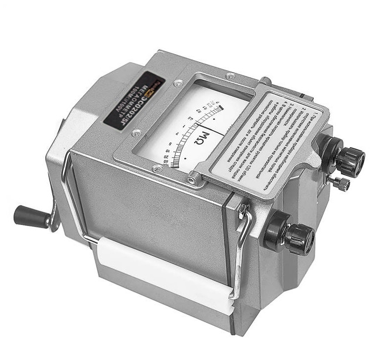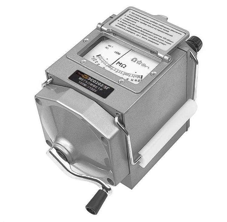 Мегаомметр ПрофКиП ЭСО202/5Г (измеритель сопротивления изоляции ПрофКиП ЭСО202/5Г) предназначен для измерения сопротивления изоляции электрических цепей, не находящихся под напряжением. Мегаомметр ПрофКиП ЭСО202/5Г применяются для измерения сопротивления изоляции электрической проводов, кабелей, разъёмов, трансформаторов, обмоток электрических машин и других устройств, а также для измерения поверхностных и объемных сопротивлений изоляционных материалов. Питание мегаомметра ПрофКиП ЭСО202/5Г осуществляется от встроенного электромеханического генератора.