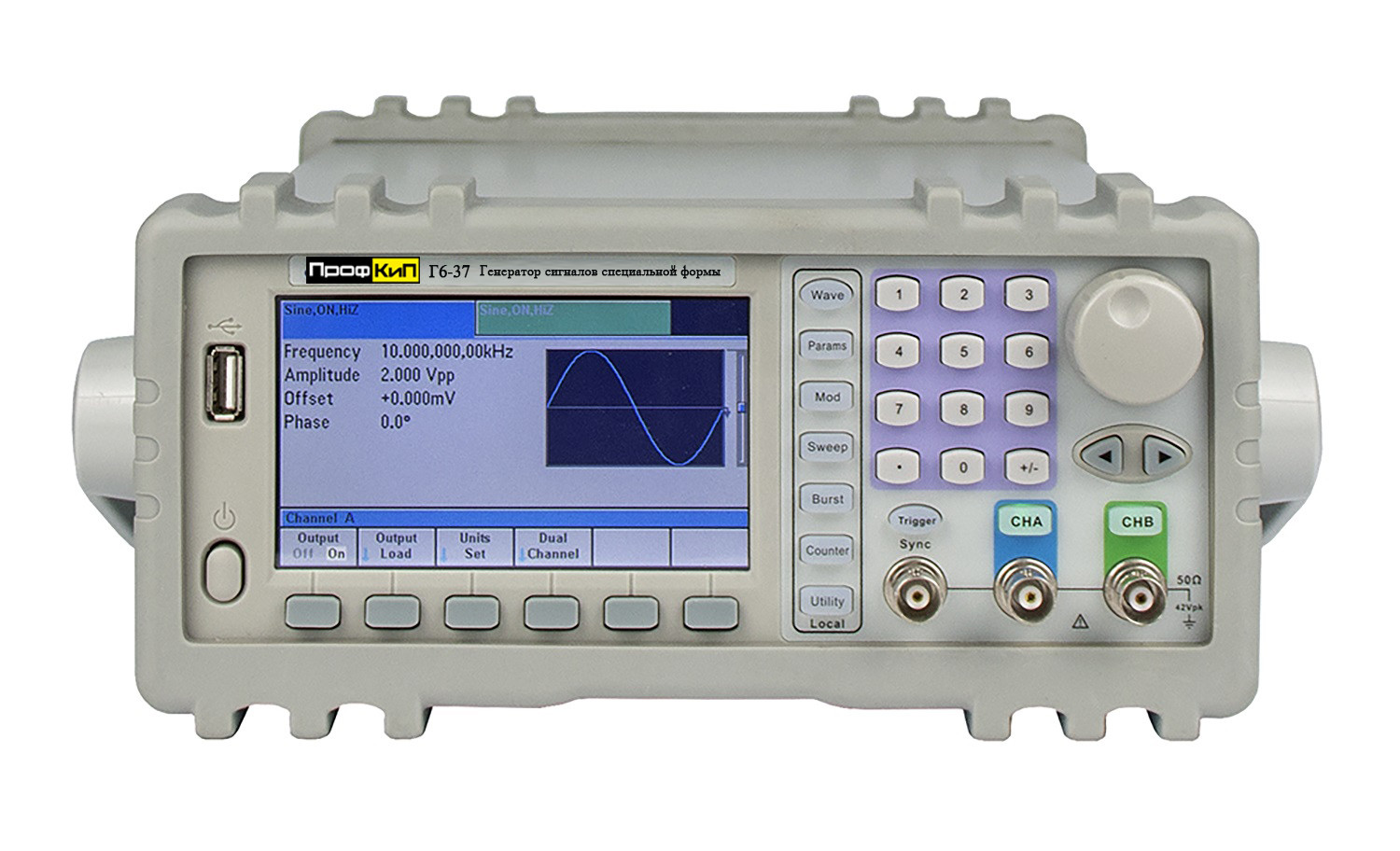 Генераторы сигналов специальной формы двухканальные ПрофКиП Г6-37 предназначены для воспроизведения высокостабильных по частоте сигналов синусоидальной, прямоугольной, треугольной, импульсной формы, а также шумового сигнала и напряжения постоянного тока. Генераторы воспроизводят так же сигналы произвольной формы, имея 50 заводских предустановок, и возможность программирования формы выходного сигнала оператором.