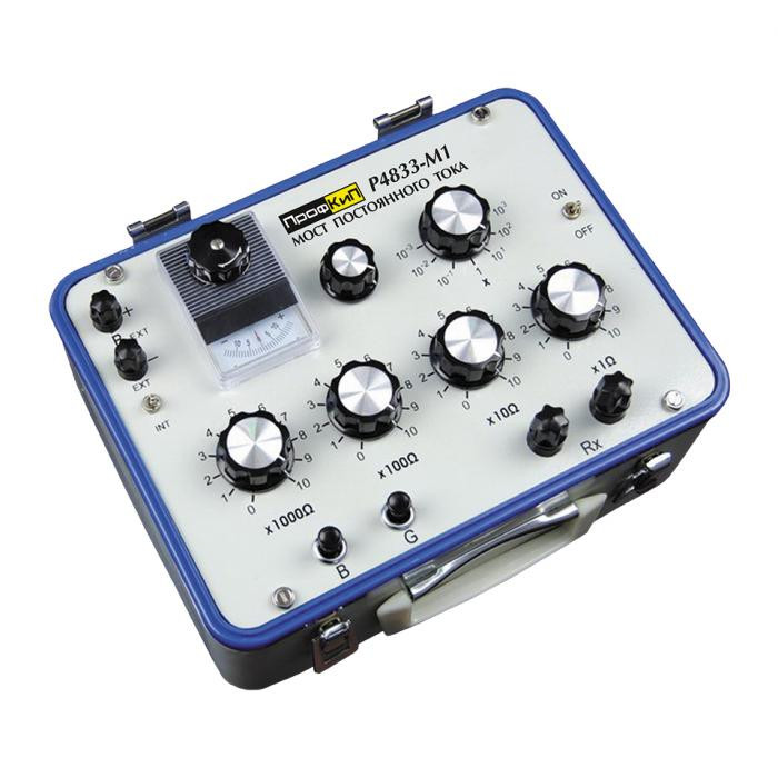 Прибор универсальный измерительный ПрофКиП Р4833-М1 представляет собой измерительный мост (мост для измерения сопротивления по постоянному току). Прибор универсальный измерительный ПрофКиП Р4833-М1 может использоваться для определения величины сопротивления в диапазоне от 1 Ом до 10 МОм. Выполнен в удобном для переноски металлическом корпусе, и представляет собой идеальное оборудование для измерений в лабораторных и полевых условиях.