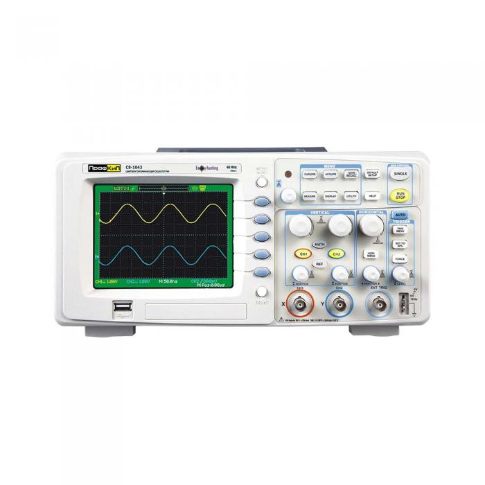 Цифровой осциллограф ПрофКиП С8-1043 — это современный прибор для решения широкого круга задач по наблюдению и анализу формы сигнала. Для упрощения эксплуатации приборе существуют несколько режимов автоматических измерений. Осциллограф цифровой ПрофКиП С8-1043 имеет цветной ЖКИ экран, меню прибора содержит набор цветовых схем, имеется поддержка русского языка. Органы управления отличаются эргономичностью и имеют удобное расположение. Режимы работы позволяют осуществлять одновременное наблюдение некогерентных сигналов, так же возможно использование различных типов синхронизации. Осциллограф цифровой ПрофКиП С8-1043 выполняет математическую обработку сигнала с различными алгоритмами, использует разные типы фильтрации. БПФ предназначен для обработки и визуализации частотных составляющих сигнала и формы спектра, что является мощным аналитическим инструментом для изучения импульсного отклика фильтров и систем, а также измерения гармонических составляющих и искажений сигнала.. Прибор легко подключается к ПК по интерфейсу USB. Так же предусмотрено подключения внешнего накопителя, для хранения данных. Расширить область применения осциллографа цифрового ПрофКиП С8-1043, используя его для измерений в мощных цепях, где присутствует высокое напряжение (источники электропитания, электромоторы, преобразователи и т.п.) возможно при использовании дифференциальных пробников, обеспечив полную развязку прибора с электрическими цепями (дифференциальный пробник приобретается отдельно). Осциллограф цифровой ПрофКиП С8-1043 может стать хорошим помощником, как в домашней лаборатории, так и на производстве.