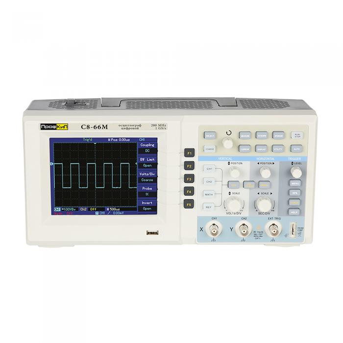 Осциллограф цифровой ПрофКиП С8-66М предназначен для наблюдения и измерений параметров формы сигнала в полосе пропускания до 200 МГц с максимальной частой дискретизации до 1 ГГц. Осциллограф цифровой ПрофКиП С8-66М может применяться для испытаний, обслуживания в полевых условиях, для исследований и разработки, для любых проверок и выявления неисправностей аналоговых /цифровых схем, для образовательных целей и т.д.