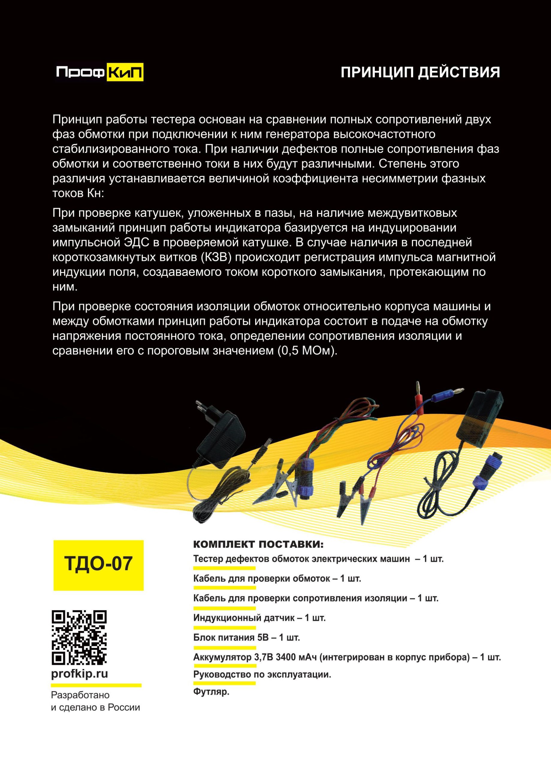 Комплект поставки тестера дефектов обмоток электрических машин ПрофКиП ТДО-07: