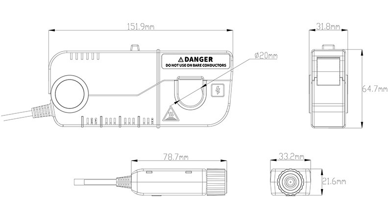 Пробники токовые высокочастотные ПрофКиП ТПВ-500 предназначены для бесконтактного измерения силы постоянного и переменного электрического тока высокой частоты. Пробники выполнены в виде измерительной головки и блока управления, которые соединены между собой кабелем BNC. На конце измерительной головки имеются раздвижные клещи, в окно которых пропускается провод с измеряемым током.